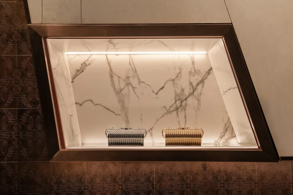 يتميز تصميم WZ Architects بأسلوب يعكس شخصيات المصممتين، حيث يتسم بالجرأة والتعقيد في آن واحد. ووفقاً لوصف المكتب المعماري: “يُحدد الفضاء خطان اتجاهيان رئيسيان يمتدان إلى أحجام مثلثية تشكل شكلاً ديناميكياً قوياً. وقد أنشأوا معرضاً عاكساً يدعو الزائر لاكتشاف المنتج وتطوره”.