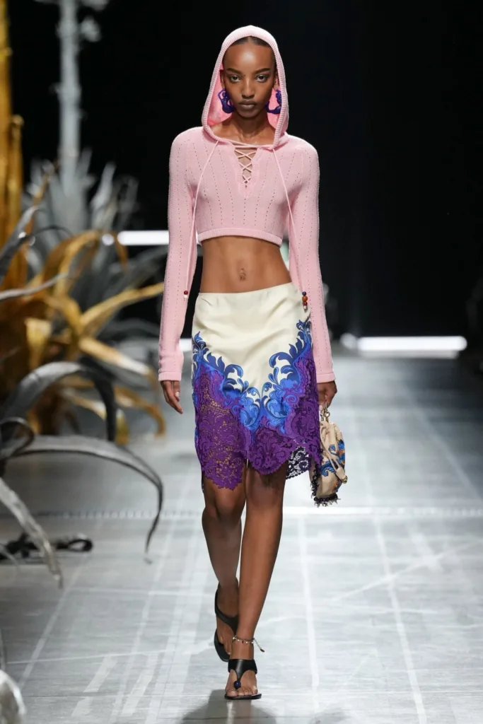 وفي عرض أترو لربيع وصيف 2025، كان الخلخال حاضرًا بقوة، سواء مع الأحذية المفتوحة أو الصنادل الجلدية، في مشهد يكرّس عودة هذه القطعة إلى قلب الخطاب الجمالي للمرأة العصرية.