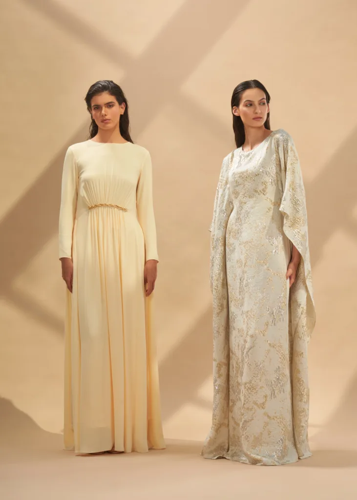 صُممت مجموعة ربيع/صيف 2025 لتواكب أكثر فترات العام نشاطاً، مقدمة قطعاً متعددة الاستخدامات تنساب بسلاسة من النهار إلى المساء. تتنوع التصاميم بين القفاطين الانسيابية والفساتين المنحوتة والتفاصيل المتموجة والقصّات العصرية، لتجسد التوازن بين الاحتشام والعصرية بأسلوب يعكس جوهر الأناقة العُمانية الراقية.