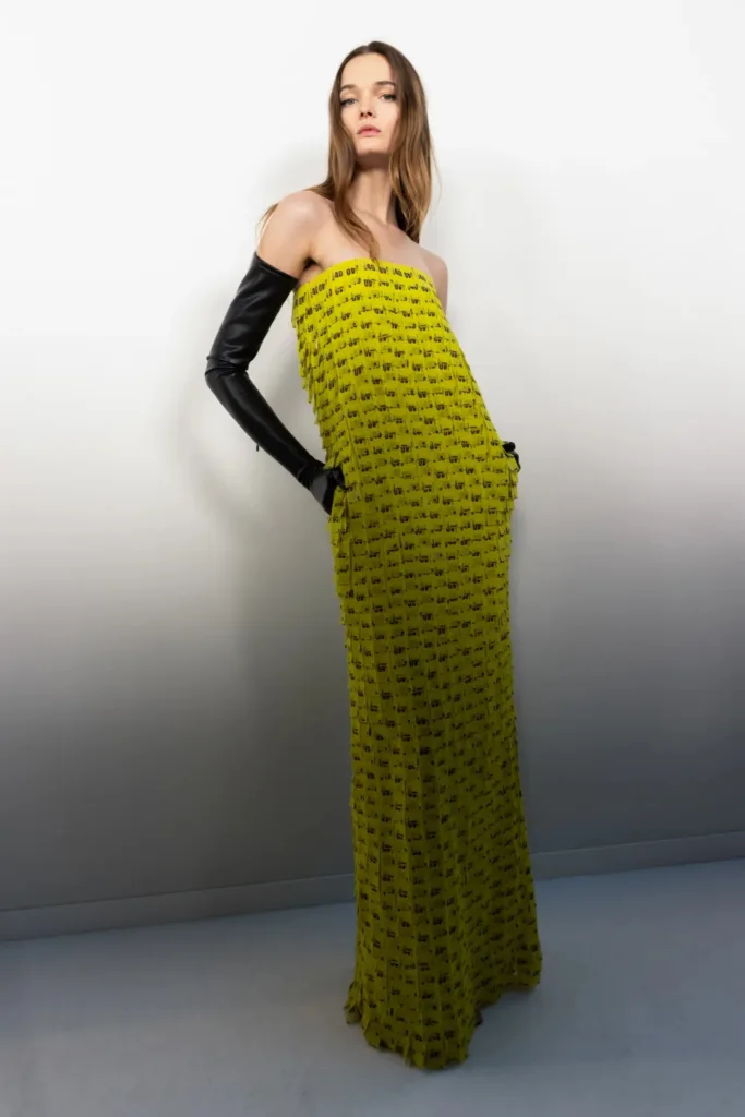 اللمسة المفاجئة التي خطفت الأنظار كانت في القطع المصنوعة من أورغنزا مطبوعٍ عليها نسخ من تذاكر المترو الباريسية وبطاقات حفظ المعاطف الصفراء. هذه التصاميم أعادت تفسير مواد يومية بسيطة ضمن إطار فني راقٍ، لتتحول من أوراق متداولة في المدينة إلى رموز للأناقة والابتكار. فالمصمم، المعروف بروح الحداثة والطابع العملي لدار كورّيج، قدّم بهذه الخطوة رؤية مفعمة بالحنين والمرح، تقف في توازن بين الواقعية الشعرية والتجريد الحداثي.
