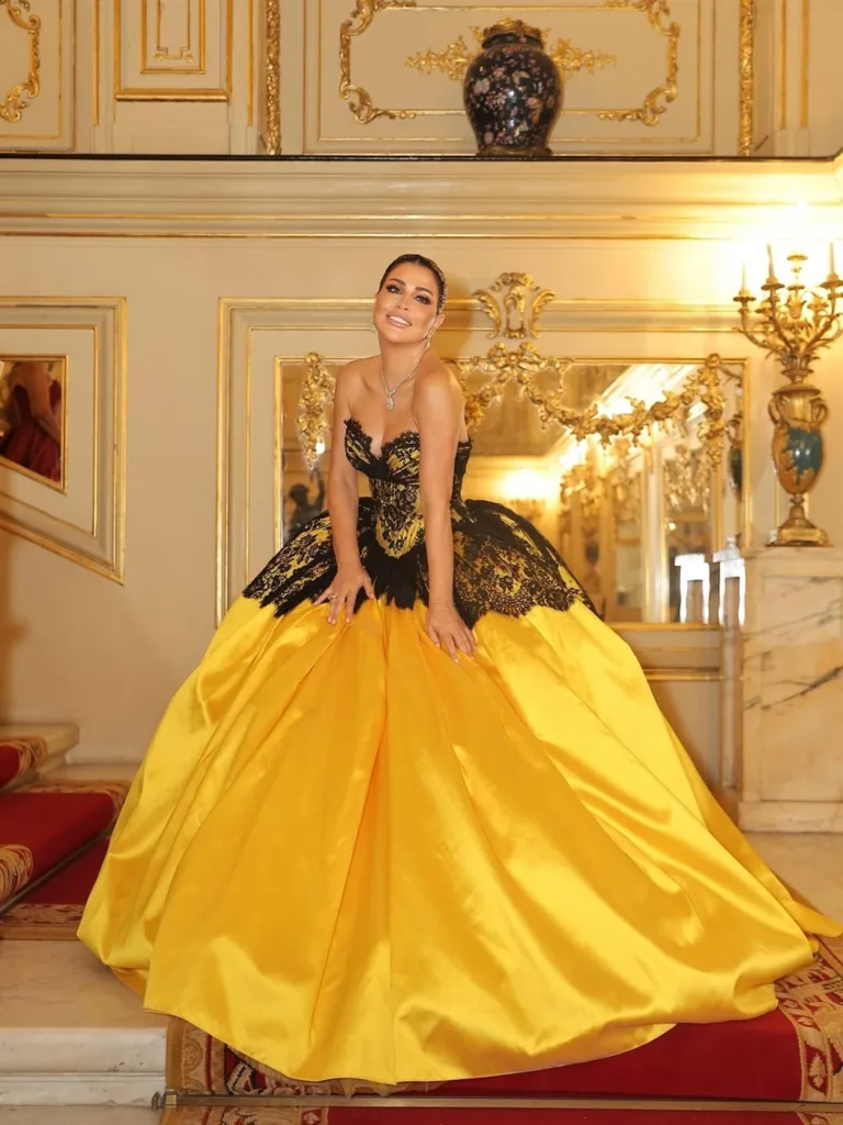تألقت جومانا مراد بإطلالة ملكية من وحي العصر الفيكتوري بحفل “ذا جراند بول” الفاخر بقصر عابدين في القاهرة، مرتدية فستانًا أصفر مميزًا مزينًا بالدانتيل الأسود