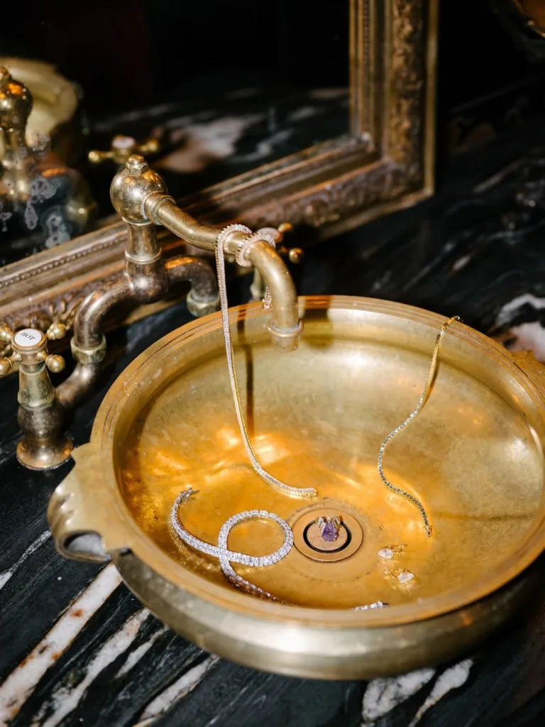 ارتدت ألانا فستان زفاف عتيقاً من تصميم فيفيان ويستوود حصلت عليه من متجر “تاب فينتج” في لوس أنجلوس. وقالت عن الفستان: “عندما جربته، عرفت على الفور أنه فستاني”. كما ارتدت أقراط جدتها المصنوعة من حجر الجمشت، وقلائد من علامة “دورسي”، ودبلة زفاف مخصصة من الذهب والألماس صممتها لها صوفيا كامان.