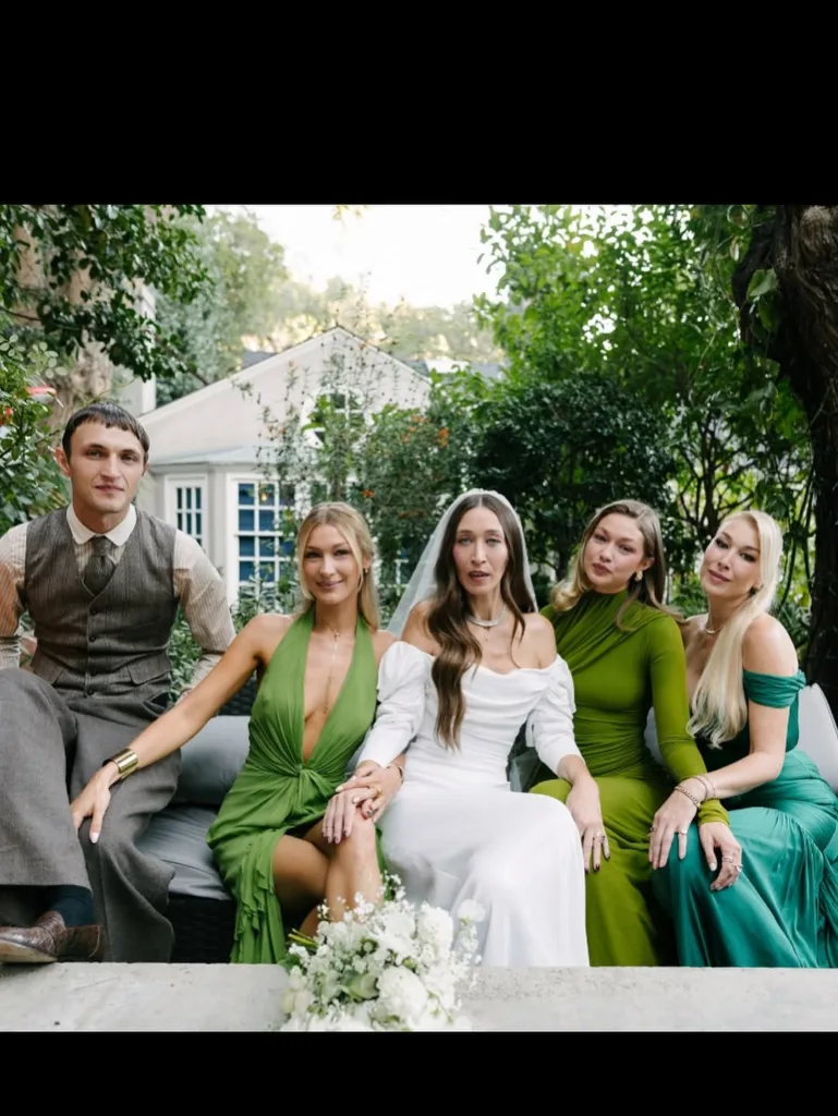 شهد الحفل حضور أفراد عائلة حديد، حيث ارتدت كل من بيلا وجيجي حديد فساتين وصيفات عرس باللون الأخضر الزيتي من اختيارهن الخاص، وظهرتا حافيتي القدمين على العشب في حديقة المنزل. ارتدت بيلا فستاناً بتصميم هالتر نيك بياقة غاطسة مع تنورة متدرجة، بينما اختارت جيجي فستاناً طويل الأكمام بياقة عالية مع تفاصيل ملفوفة.