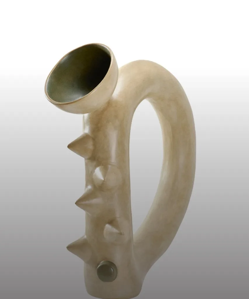 من بين الأعمال اللافتة، يبرز عمل “نسيج فرا فرا رقم 2” لمجموعة بابا تري ماستر ويفرز بالتعاون مع ألفارو كاتالان دي أوكون من إسبانيا، وهو نسيج ضخم من عشب الفيل يُترجم صوراً جوية لمساكن دائرية من منطقة غورونسي في غانا. أما الفنان البريطاني جوب بيرنز فيقدّم عمل “إناء الرقود”، وهو إناء مخروطي من الفولاذ يستلهم تراث التصنيع في منطقة ويست ميدلاندز البريطانية.