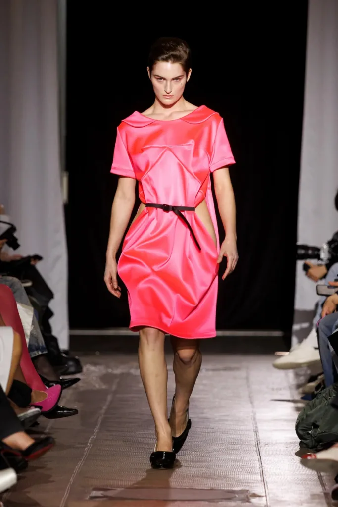 - باليتة الأشكال تراوحت بين معاطف بيكو صندوقية وبليزرات مصغّرة، وتنانير توتو منفوخة وفساتين معقودة عند الخصر وأحزمة ضخمة.