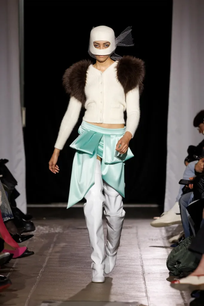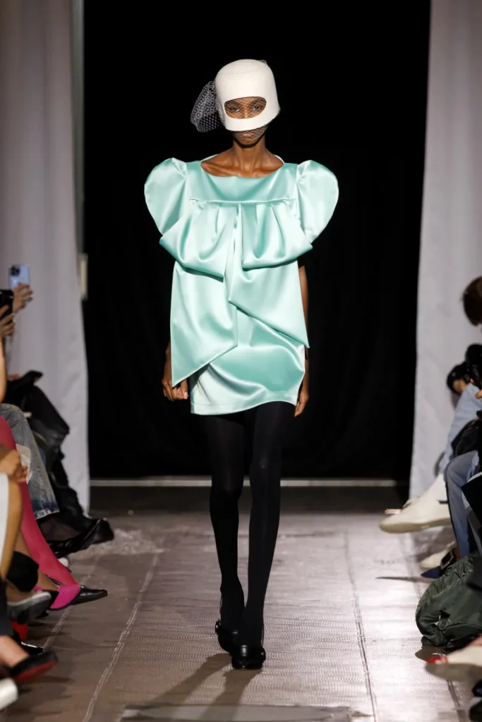 - إشارات عرائسية ظهرت مبكراً عبر قبعات «بيلبوكس» وفساتين مبنية بدقة، لكن بروح تخريبية بعيدة عن الكلاسيكيات الهادئة.