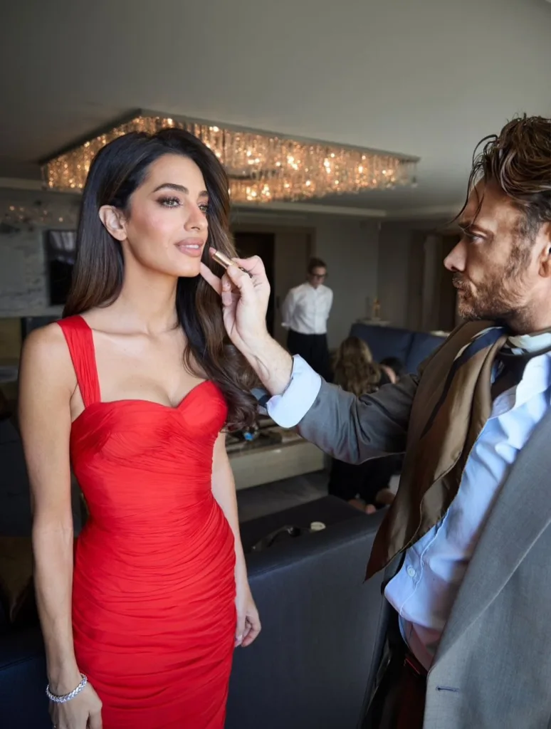 عندما يتعلق الأمر بـ أمل كلوني ، لا يمكن فصل الجمال الخارجي عن الأناقة الداخلية. تلك الإطلالة الحمراء الجريئة من بالمان (Balmain) المعاد تصميمه من الفترة الذهبية للدار الفرنسية – من عام 1957 بالتحديد – كانت بمثابة إعلان عن عودة ملكة متوجة إلى حفل الجوائز. لكن ما جعل هذه الليلة استثنائية حقًا لم يكن فقط الفستان الأحمر الفاتن أو الماس البراق من كارتييه، بل كان ذلك الوهج الطبيعي الذي تألقت به البشرة، وذاك السر الذي يحتفظ به فريق الجمال الذي وقف وراء هذه الإطلالة الخيالية.