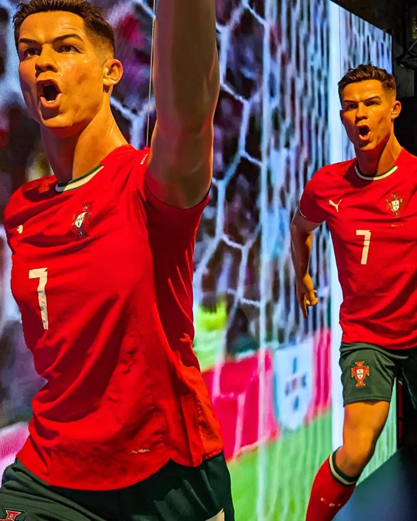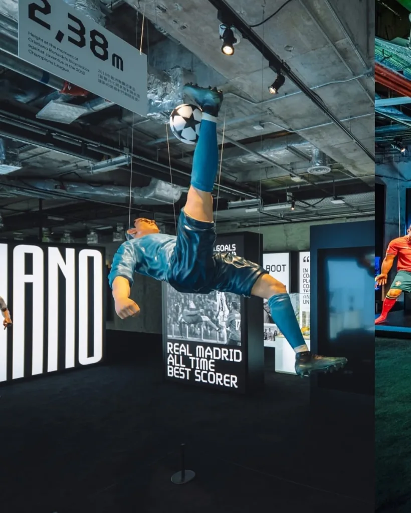 ويحتوي المعرض على تماثيل بالحجم الطبيعي تجسد لحظات مختلفة من مسيرة رونالدو، من بينها تمثال لوضعية الاحتفال الشهيرة بالقفزة الهوائية، وتمثال آخر يظهر فيه مرتدياً الزي السعودي التقليدي. كما يتيح المتحف للزوار تجربة بصرية متكاملة تشمل مجسمات لبعض اللقطات الخالدة في الملاعب، وركناً مخصصاً للتصوير بتقنيات الذكاء الاصطناعي بجانب رونالدو.