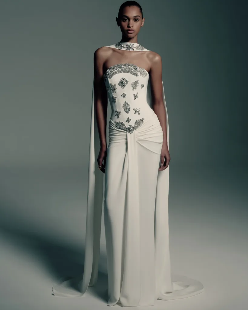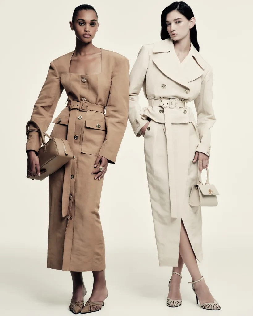 تعكس التصاميم هذه الفلسفة من خلال “الظلال الصحراوية التي تمتزج بنعومة صوفية، بين الانسيابية البدوية والرقي الخالد”. وتحتفل القطع بأنوثة المرأة، متأرجحة “بين الهشاشة والقوة”.