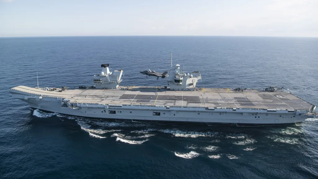تُعدّ “إتش إم إس كوين إليزابيث” (R08) السفينة الأم لفئة حاملات الطائرات التي تحمل اسمها، وهي أكبر سفينة حربية بنتها المملكة المتحدة على الإطلاق. تبلغ حمولتها نحو 65,000 طن، وطولها 284 متراً، وتستوعب ما يصل إلى 1,600 فرد من الطاقم والطيارين وعناصر الدعم. دخلت الخدمة الفعلية عام 2020، بعد أن أُطلق عليها اسمها في احتفال رسمي عام 2014 بحضور الملكة إليزابيث الثانية.