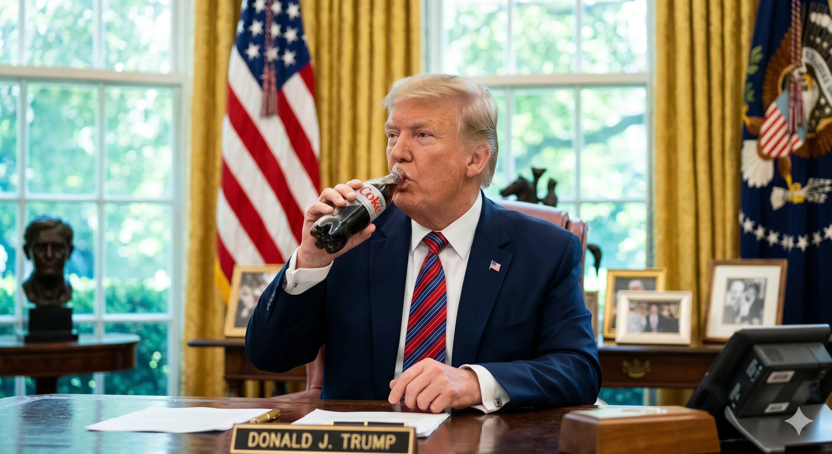 لا تقتصر علاقة ترامب بهذه المشروبات على التصريحات اللافتة، بل تمتد إلى جزء من ديكور مكتبه. فور عودته إلى البيت الأبيض في يناير 2025، أعاد تثبيت الزر الأحمر الشهير على مكتبه في المكتب البيضاوي، وهو زر مخصص لاستدعاء علب الدايت كولا. وكشفت صحيفة “وول ستريت جورنال” أن الزر أُعيد وضعه بداخل صندوق خشبي على الطاولة ذاتها التي يوقّع عليها القرارات.