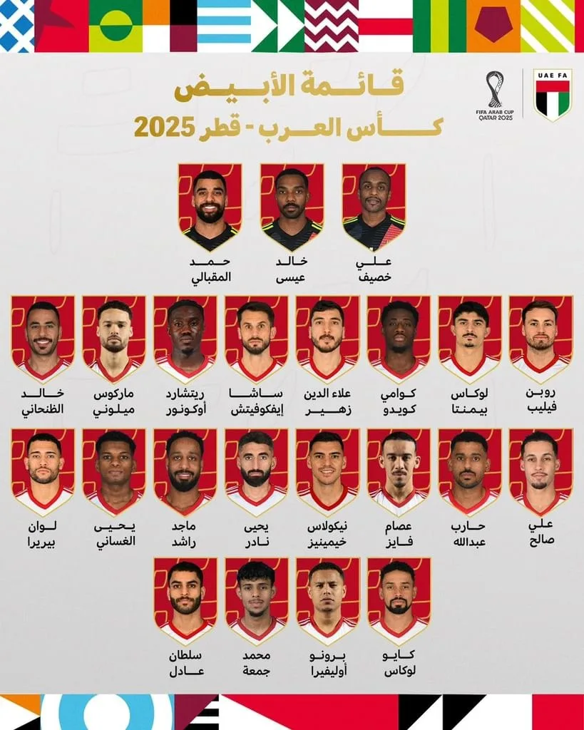 أعلن اتحاد الإمارات لكرة القدم قائمة منتخب الإمارات لكأس العرب 2025، المقررة من 1 إلى 18 ديسمبر في الدوحة، بمشاركة 16 منتخباً عربياً.